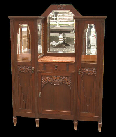 オランダ南部で手に入れたアールデコスタイルのビュッフェ。下のカップボードやダイニングセットのそろいの品。当時はフランスのアールデコデザインが北へも伝わり、ベルギー・オランダ・ドイツ・イギリスなどでもアールデコデザインの家具がつくられた。北ヨーロッパのものはほとんどがオーク材で出来ている。ベルギー製の可能性もあり。