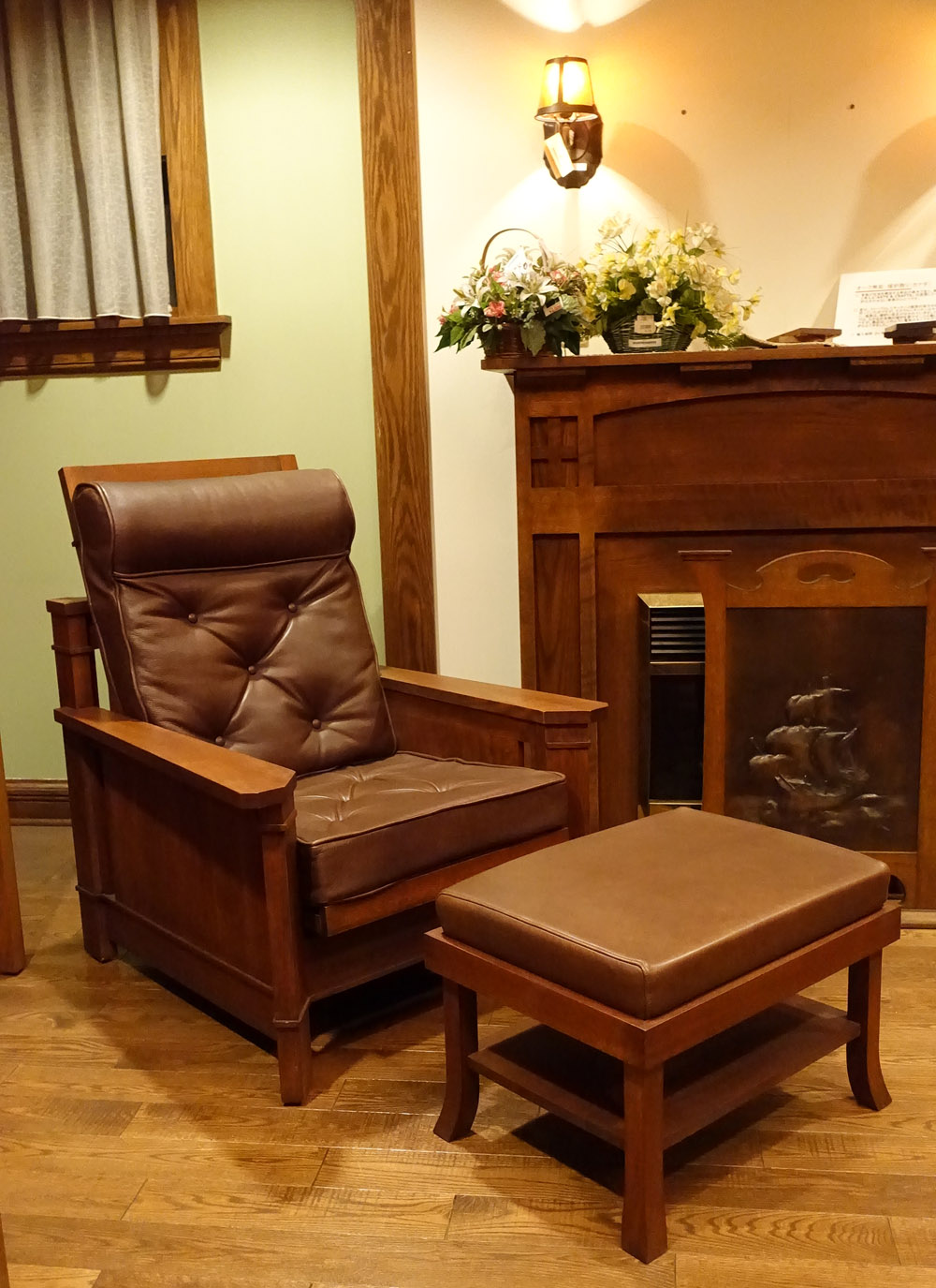 フランク・ロイド・ライト ダナ・トーマス・ハウス リクライニングチェア 革張り クッション付き
